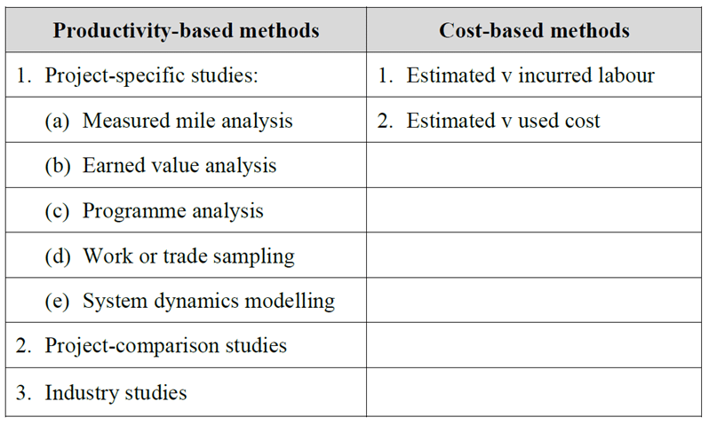 It describes the productivity-based methods as being the preferred methods, and they are listed in order of preference. The cost-based approach is considered to be the least robust and is mostly used when lost productivity cannot be reliably calculated.