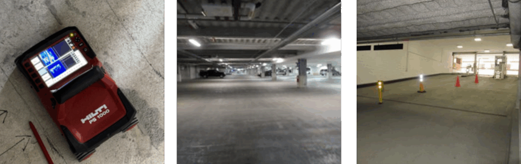 Traditional methods of structural assessment can be time-consuming and costly, often requiring probes. GPR speeds up the inspection process and reduces labor costs while minimizing disruption to parking operations.