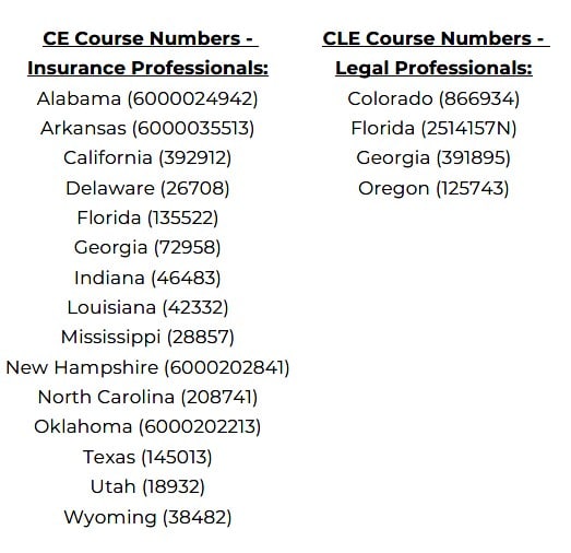 *This course has been approved by the Florida Department of Financial Services for insurance continuing education credit. By registering for this webinar, you are confirming the information you provided is legitimate and understand that a violation may result in an administrative sanction based on paragraph 626.611(1)(g), F.S., resulting in the loss of course credit.